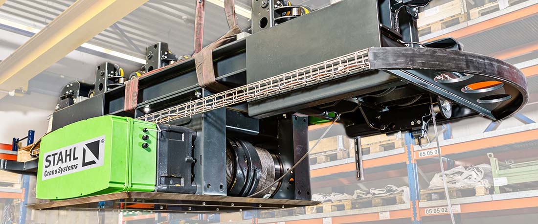 In summer 2016, STAHL CraneSystems produced 18 special SH 60 hoists with special articulated trolleys and new SFR 35 friction wheel drive on behalf of STEULER Anlagenbau. The hoists are intended for use in an automated circular rail tunnel pickling plant for wire coils near Shanghai.