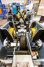 The surface treatment plant consists of a pre-treatment stage with potassium permanganate/sodium hydroxide, several pickling stages, zinc phosphating plus borax, soap or lime coating with the necessary rinsing stages. Transport through the plant is carried out using the special hoists produced by STAHL CraneSystems, driven by the SFR 35 friction wheel drive. The trolleys and hoists are controlled via PLC and WiFi plus other position systems used by STEULER. The travel speed can be adjusted between 2.0 and 20.0 m/min. using a frequency converter. By using articulated trolleys, it is possible to travel through a 4,000 mm curve radius. The VA protective plates mounted underneath the wire rope hoists and friction wheel drives protect the equipment against the environmental influences of the plant and pickling tanks.